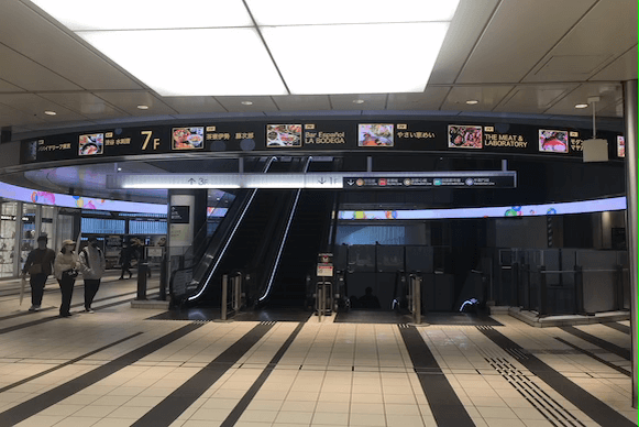 05B5番出口の表示を過ぎるとエスカレーターが見えます。